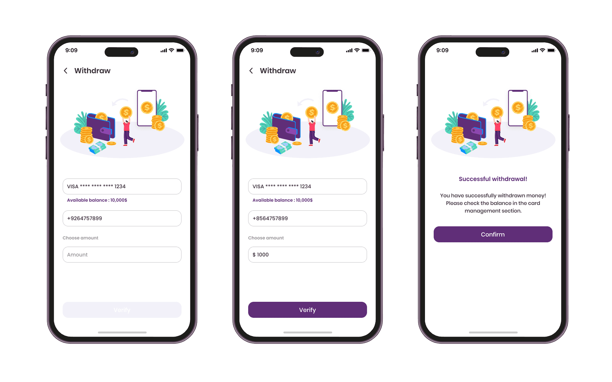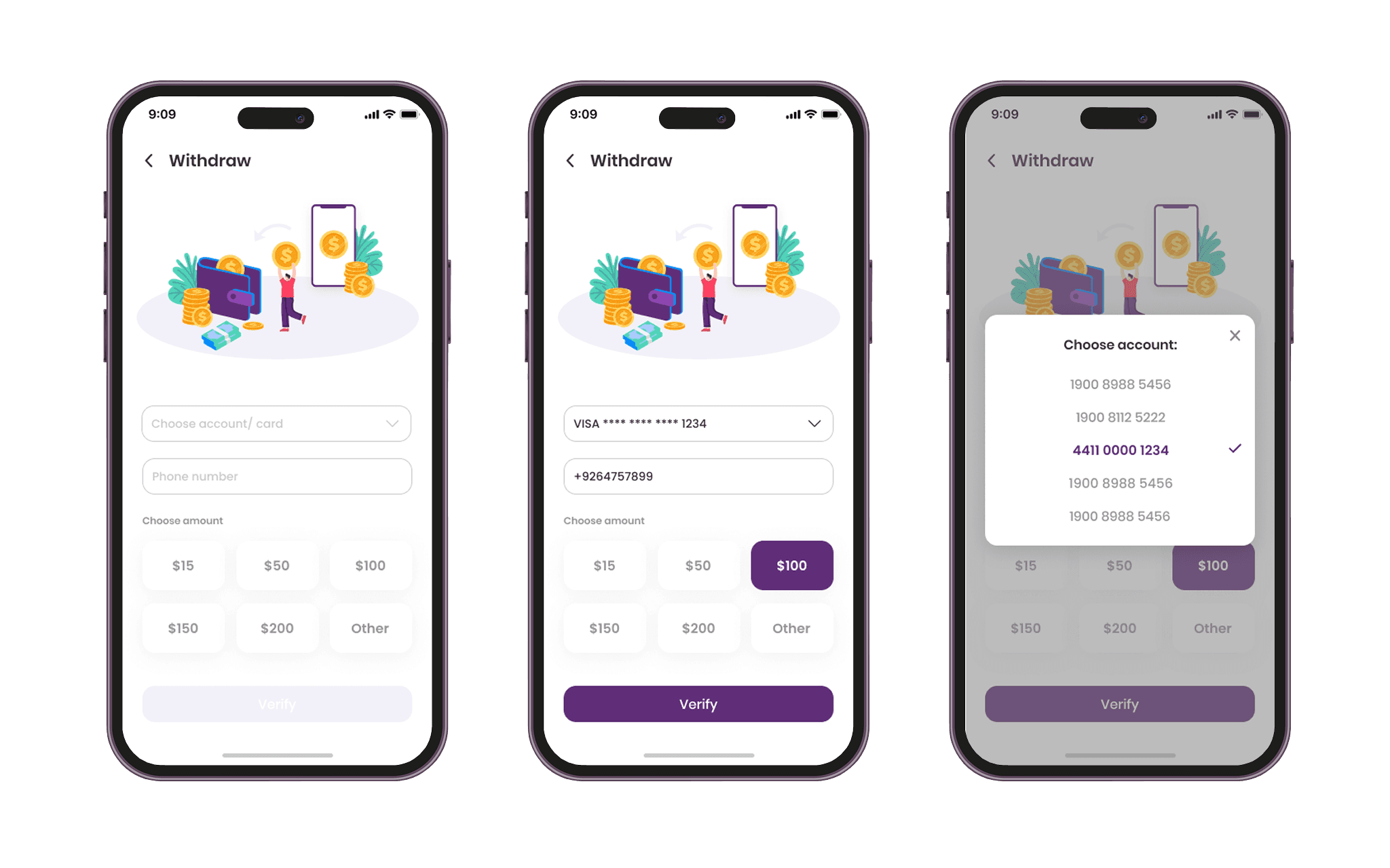 Withdraw Money Screens