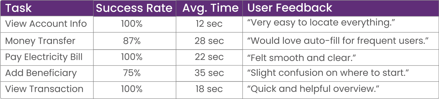 Frequent usability testing helped catch small issues before they became major blockers, improving both speed and efficiency.